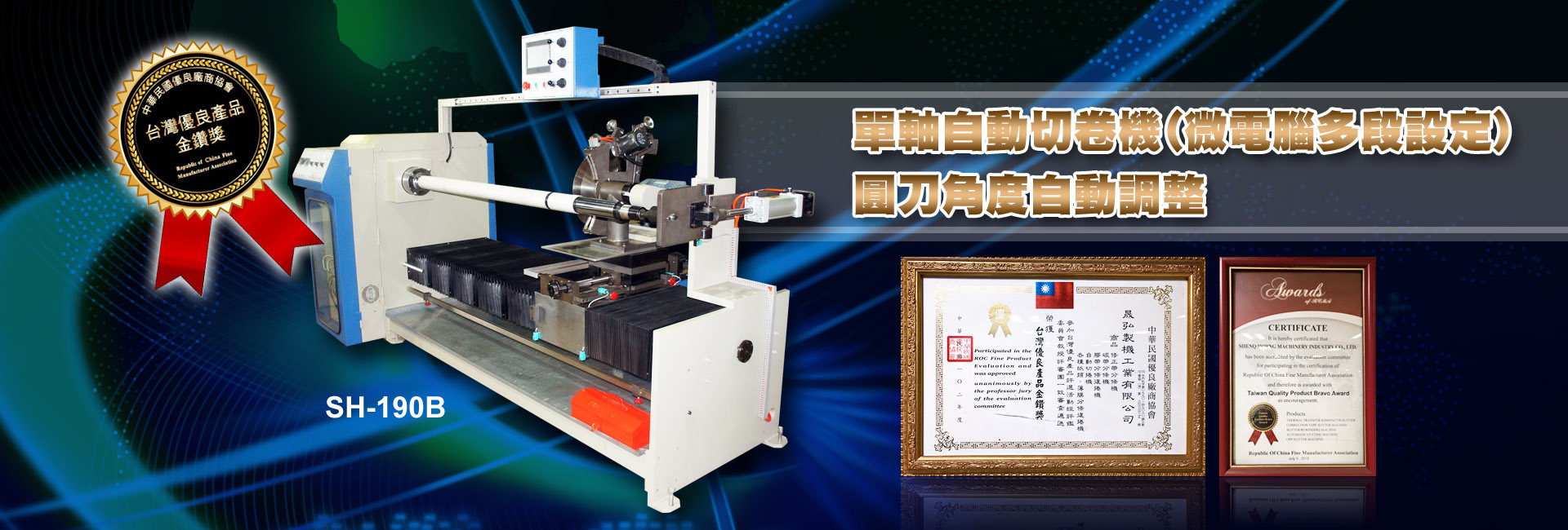 晟弘製機工業有限公司,成立於1987年,是台灣著名製造廠商,專業於各種分條機、表面捲取分條機、複捲機、自動裁切機,以及貼合分條複捲機之設計與製造。晟弘有堅強的研發團隊,可以提供客戶優異的品質,競爭性的價格及最好的服務。晟弘持續不斷致力於研究並改進所生產的機械產品,期望提升產品品質及效率滿足客戶的需求。同時,我們也使用精密的機械測試及嚴格管控品質。晟弘相信,藉由不斷創新並累積大量的經驗、準時的交貨、穩定的品質保證,專業的設計團隊,依照貴司所需提供最符合需求的產品,我們一定可以滿足客戶的需求。